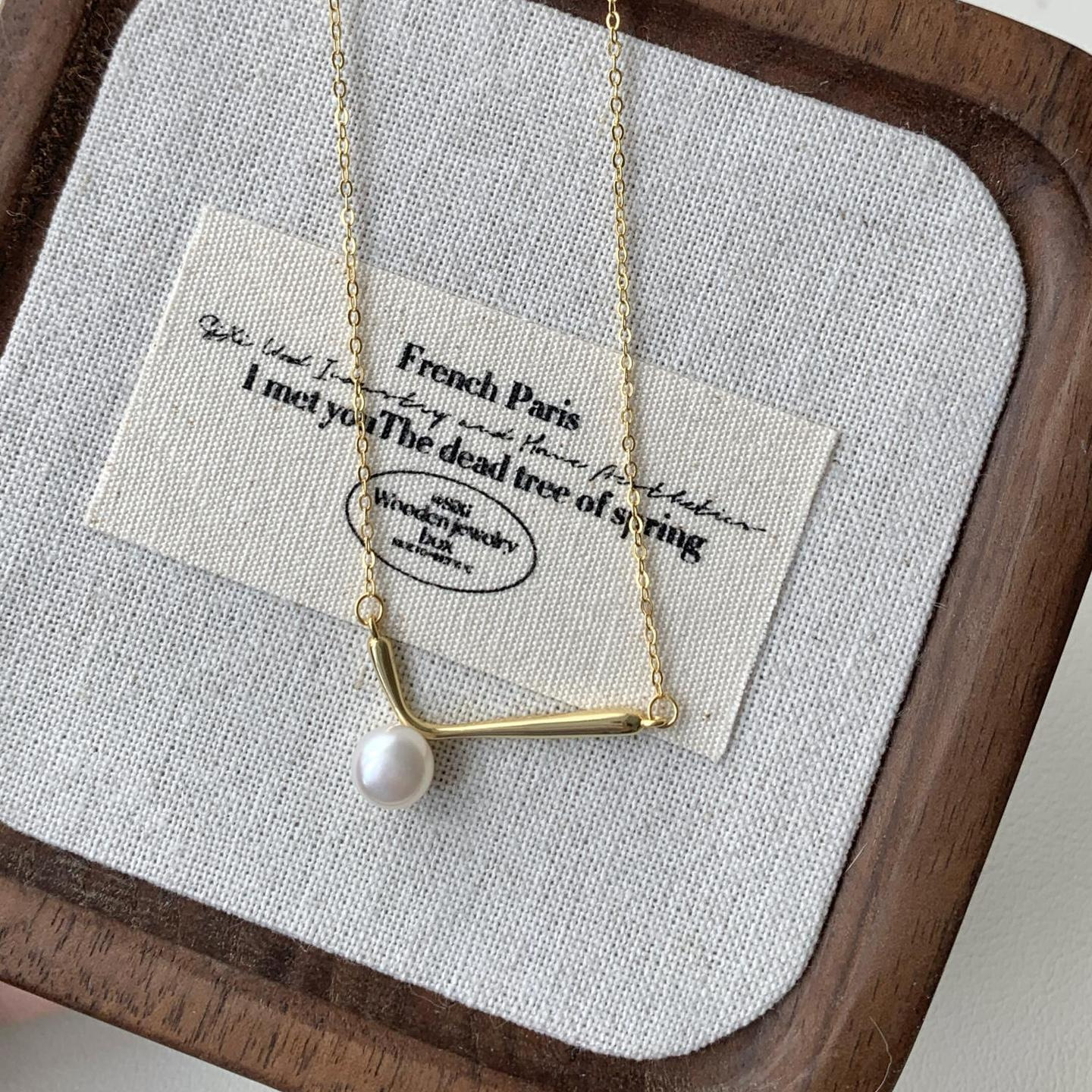 S925 Sterling Silver Bar-style Pearl Necklace For Women